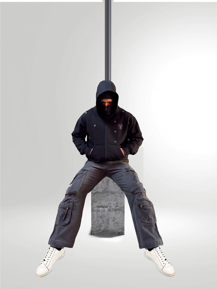 - Built-In Balaclava Mask: Whether you’re braving chilly winds or aiming for a sleek, tactical look, the integrated balaclava hoodie offers seamless protection without compromising on style.
