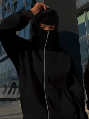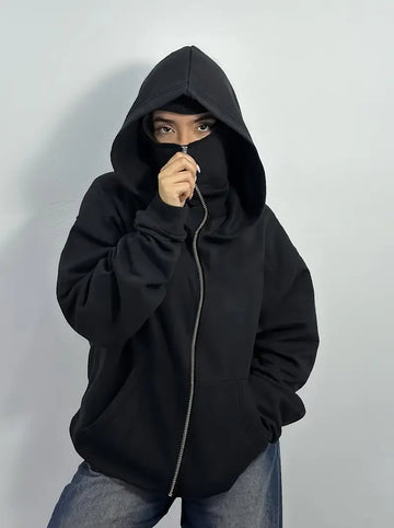 Street Style women's Balaclava Hoodie | Ninja Hoodie | Full Face Mask | Zip Up Hoodie